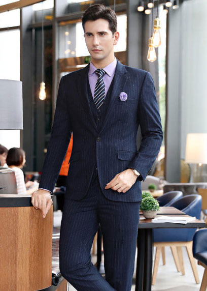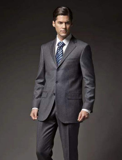 西裝是一種“舶來文化”,在中國,人們多把有翻領和駁頭,三個衣兜,衣長在臀圍線以下的上衣稱作“西服”,男士西裝最常見的款式是一??圩印闪?圩雍腿?圩?。照國際正統禮儀,穿西裝應“坐時解扣,站時系扣”。此外,西裝紐扣,是區分款式、版型的重要標志。
