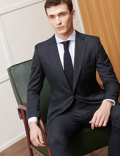 深藍色給人尊敬端莊的感覺,充滿了成熟與睿智,是職場里認可度最高的西裝。嚴密有序的線條之間編織著職場男士最穩妥、最嚴謹的工作態度,簡潔優雅,又自然流露出溫文爾雅的紳士風度。