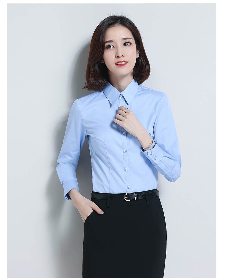 職場藍(lán)色經(jīng)典職業(yè)襯衫,選用優(yōu)質(zhì)純棉面料,合體裁剪,職場穿著更干練,舒適.
