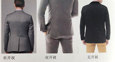西裝后背一般有開衩,當初開衩的設計是為了穿著者騎馬方便。開衩分為單衩和雙衩,單衩屬于輕松活潑的風格,多用在開襟低的設計,身材不高的男士最好選擇單開衩,在視覺上會顯高。雙衩方便男士手插于口袋,不會影響西服外型,雙開衩適合身材高大的男士。現在穿著西服已不像從前因為騎馬,必須下擺開衩以便活動,所以也可以選擇不開衩。另外有一點需要注意,雙開衩的西服無法修改衣服的松量,如果是要涉及到日后隨著體型的改變需要修改衣服的,不建議用雙開衩。