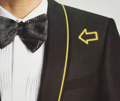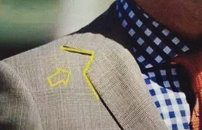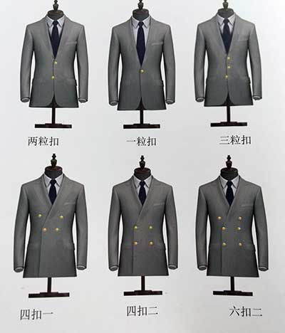 不同款式雖有不同扣法,坐姿時(shí)可解開(kāi),站立時(shí),要在注意將紐扣扣上,以示禮貌。選擇不同的扣數(shù)和排數(shù),可看出不同的比例和身材厚實(shí)度的變化。