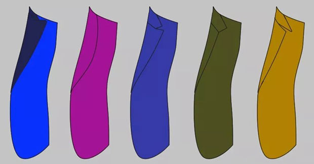 值得注意的是,夸張的領(lǐng)型設(shè)計(jì)會(huì)破壞男士西裝原有的、偏程式化風(fēng)格的視覺(jué)平衡,從而喪失男裝風(fēng)格原有的感覺(jué)和味道,因此,定制西裝的領(lǐng)型變化不宜過(guò)大。當(dāng)客戶在我們這里選擇定制西裝時(shí),我們從西裝領(lǐng)型設(shè)計(jì)的疊門、駁頭翻折點(diǎn)的位置和翻駁領(lǐng)形狀及寬度這三方面內(nèi)容來(lái)為客戶搭配適合他們的西裝領(lǐng)型: