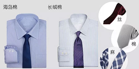 用海島棉織的襯衫面料非常輕薄,這種近乎透明的織棉與絲綢及其他輕質材料做的領帶進行搭配最為適合,如果有沒有領帶內襯更好。同樣輕柔質地的長絨棉襯衫,也適合與輕質絲綢、棉和亞麻布質地的領帶進行搭配。