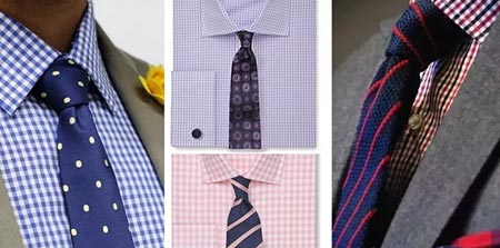 其次,比較常見的襯衫花型是“格紋”,小格子襯衫最宜用帶細小圖案或肌理的深色領帶與之搭配。窗型格襯衫可以用能夠映襯格子顏色的有圖案的領帶進行搭配。而大格嵌細格的襯衫面料,則可以嘗試搭配有凸顯格子的寬條紋領帶。