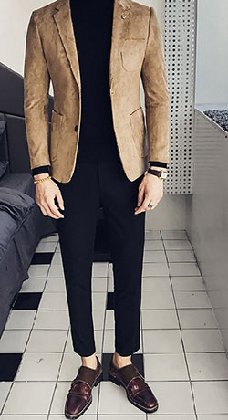一身棕色的西裝搭配,自然不會出錯,并且能襯托出成熟男人的瀟灑魅力,但卻不太適合年輕的小伙子。對于年輕人而言,用棕色西裝搭配其他顏色的褲子和鞋子,可以輕松營造雅痞的休閑韻味。可以嘗試用深藍色的褲子和黑色皮鞋搭配棕色外套,雖然黑色和深藍色比較接近,但黑色的褲子搭配棕色外套,會讓人產(chǎn)生壓抑的感覺,是不建議的。
